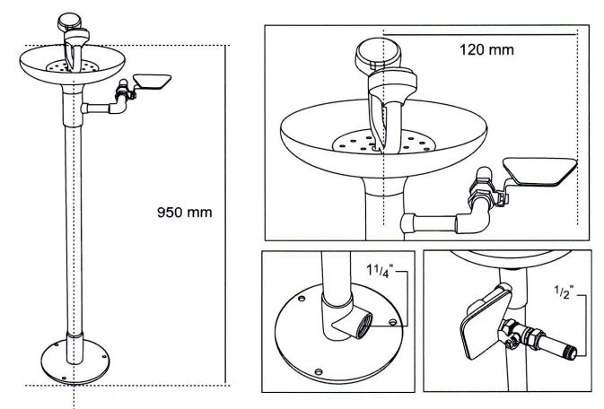 EconomyLine - Volně stojící kompaktní oční nouzová sprcha s miskou - detaily