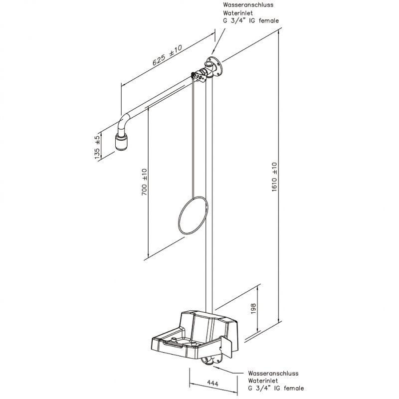 Tělní nouzová sprcha s kompaktní oční sprchou, s miskou, na omítku - detaily