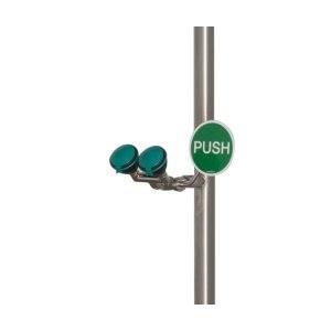 - Spouštěcí terč z oceli, 130 mm, krytý chemicky odolným práškovým lakem s velkým nápisem „PUSH“ s dosvitem, kulový ventil s rádiem 90 °, sám se neuzavírá