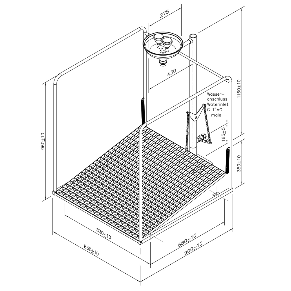 Klecová oční nouzová sprcha s vaničkou, samovypouštěcí - detaily