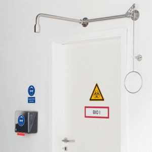 Tělní nouzová sprcha s táhlem, nad dveře, na omítku, nerez