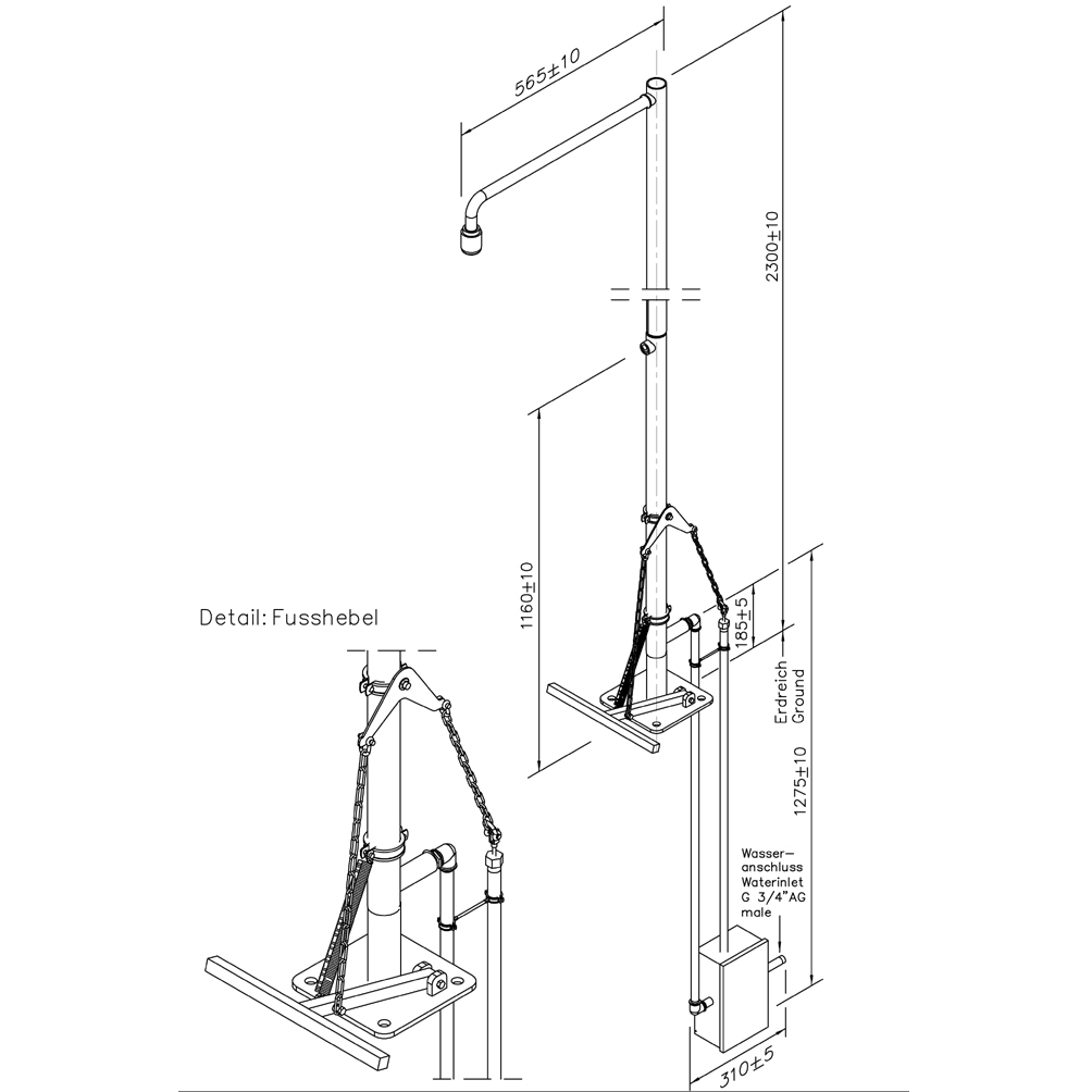 Mrazuvzdorná tělní nouzová sprcha, spouštění pod zemí, napájení v nezámrazné hloubce - detaily