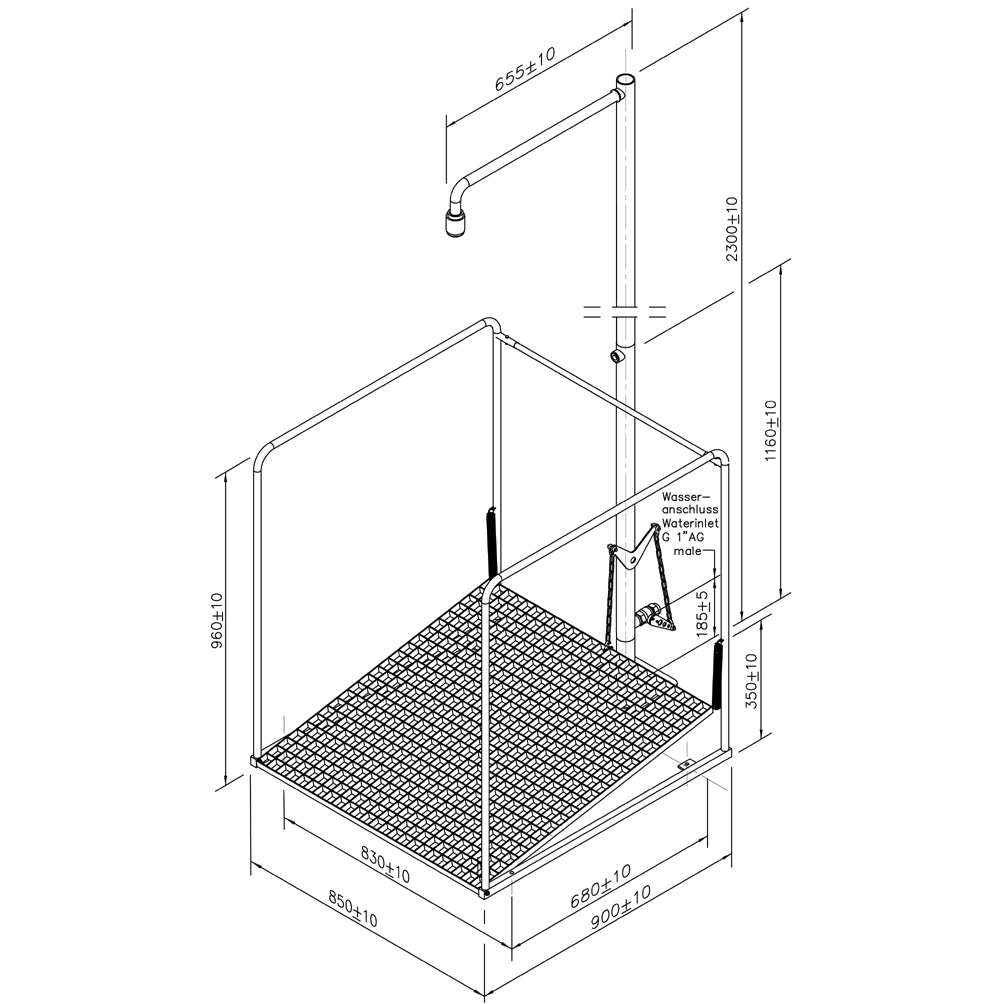 Klecová tělní nouzová sprcha, samovypouštěcí, nerez - detaily